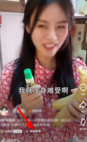 2、随后需要用户们点击视频页面下方的“视频原声”按钮,如此一款就会进入同款视频页面,找到拍同款的对应按钮。