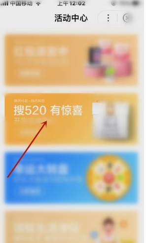 2、打开活动中心页面点击“搜520有惊喜”选项。