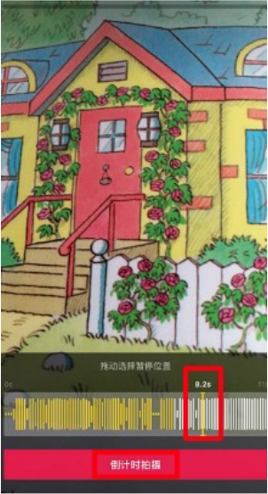 5、将黄色的时间轴拖到8.2秒,然后开启倒计时的拍摄;