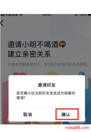 6、点击后 ,在确认邀请界面,点击确认即可发送邀请。好友同意邀请后,就可以建立闺蜜关系