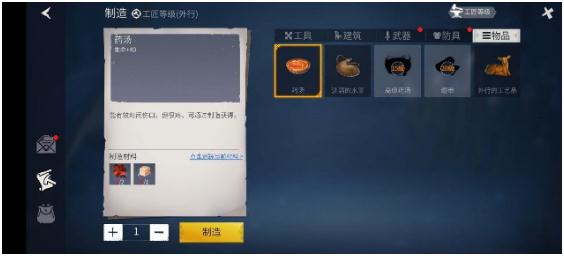 如果忘记带采集工具(斧头、矿镐)的话,可以试用【制造】功能现场制作,生命值垂危时也可以现场使用动物油脂+鼠尾草制作药汤回血,利用好周边的道具是在冰原上存活必须掌握的技巧哦!