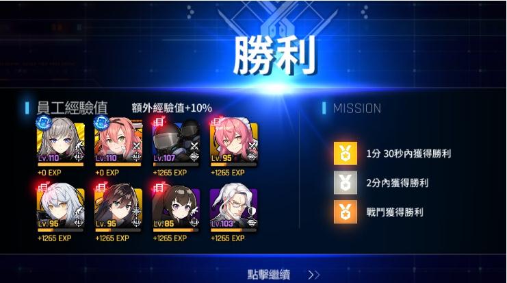 每次获胜,在没有吃 buff 的情况下,每个角色可以获得 1265 点经验,如果你加入了工会,还能开一个+15%经验的buff。一般的活动图我们都能做到 2 带 6,有些图甚至能做到 1 带 7,如果练度低一点,就带的人少点,这关系不大。