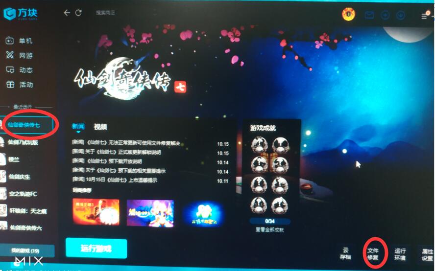 2、左侧选中《仙剑7》游戏图标后,右击右下角“文件修复”按钮
