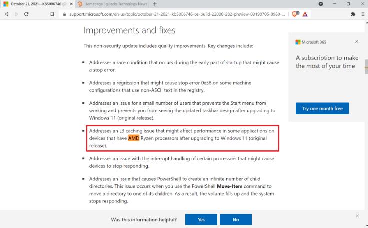 Microsoft 和 AMD 已发布适用于 Windows11的更新,以解决影响 Windows11设备上的 AMD 处理器性能问题的性能问题。