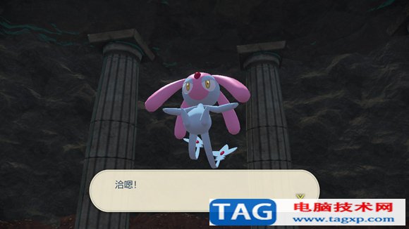 这时阿尔宙斯手机显亮了,对这前面的石头照射,出现了一个洞窟,先不管了,我们进去吧。