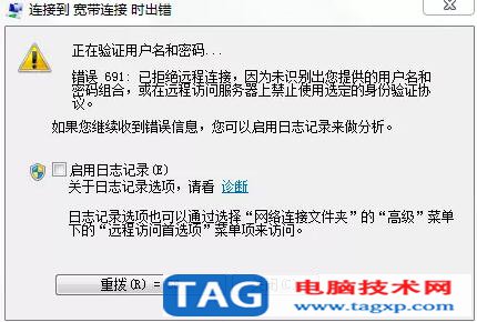 (2)、如果用“宽带连接”拨号上网的时候,出现:691错误代码;说明是 宽带账号 或 者宽带密码 不正确。这时候,请仔细检查你的宽带账号和密码信息,如不清楚,建议咨询宽带运营商。