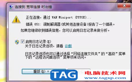 (3)、如果用“宽带连接”拨号上网的时候,出现:651错误代码;说明是宽带线路问题。
