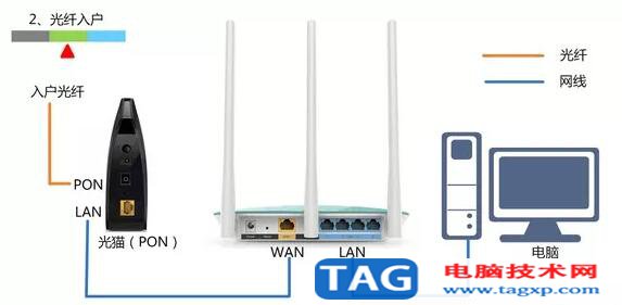 (2)、用电脑来设置路由器时,电脑需要用网线,连接到路由器LAN(1\2\3\4)中任意一个接口。