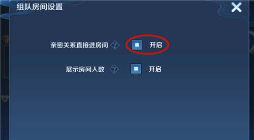 如果你想避免出现这种情况,也是可以手动设置关闭的,点击组队房间顶部中间的设置按钮,取消勾选亲密关系直接进房间的选项,届时好友就不能随意进出你的组队房间了。