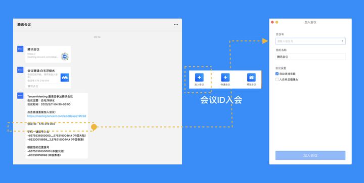 打开腾讯会议,在腾讯会议主面板,选择”加入会议“,输入会议号,以及您希望在会议中显示的名字(默认使用您个人资料页的昵称),并勾选相应的入会前设置项,点击”加入会议“即可成功入会;