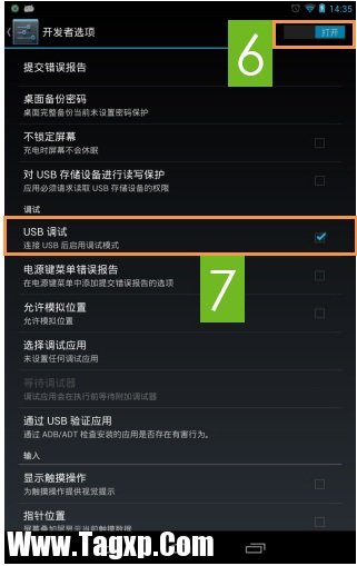 5.点击打开右上角的开关,即可打开 USB调试模式