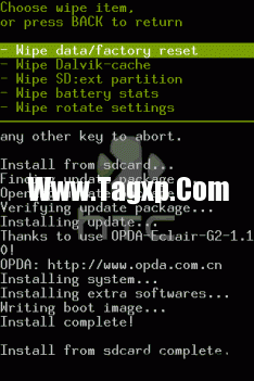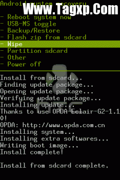 5. 当屏幕最下方的英文出现 complete,并回到recovery主页时,就说明刷机成功了!