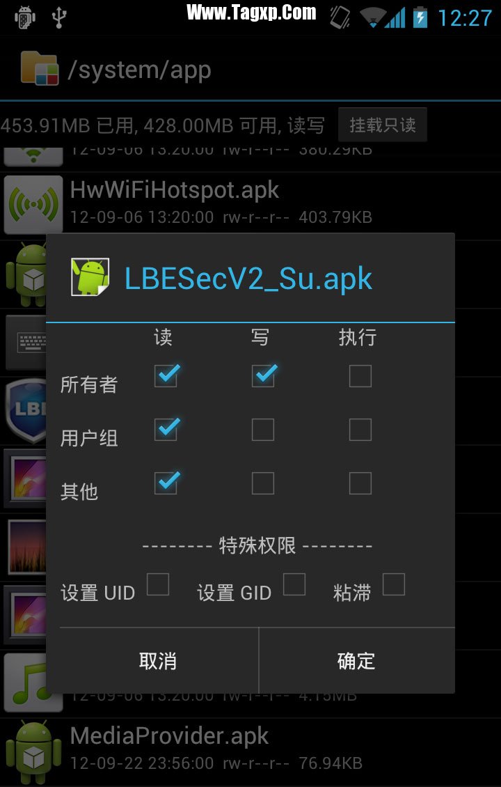 第一步:解压附件,把解压得到的 LBESecV2_Su.apk 文件用re管理器放到 /system/app路径下,修改权限为644,如图: