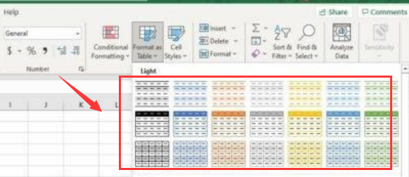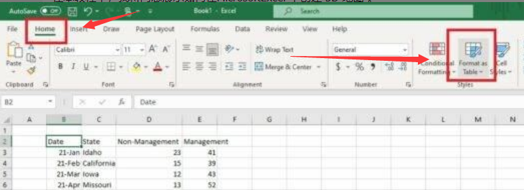 1.首先打开excel,点击【主页】,打开【格式为表格】选项