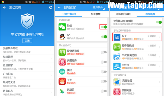 虽然在Android 5.0之后软件自启的现象有所减少,但在实际测试中笔者发现仅仅依靠系统的干涉效果并不理想,而借助于安全类软件管理起来也相当便捷。能管理自启的软件不少,只是现在支持免root管理自启的软件还不多,总的来说,依靠卫士类软件进行自启/唤醒的管理能让手机变得更流畅,而且软件的启动速度也更快。