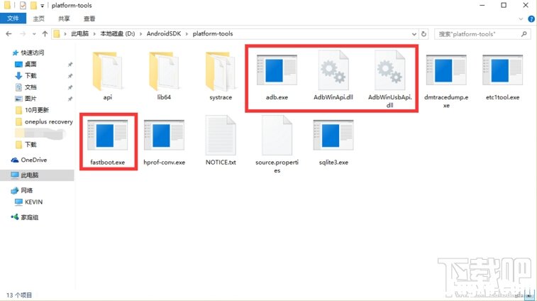 解压文件夹内的adb.exe、AdbWinApi.dll、AdbWinUsbApi.dll、fastboot.exe四个文件。