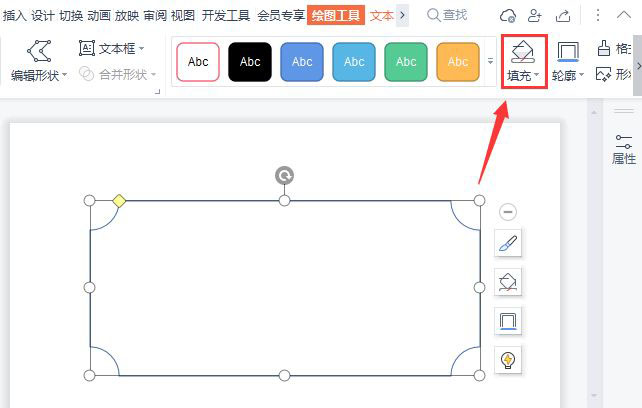 我们画出一个缺角矩形的形状,把填充颜色设置为无,如图所示。