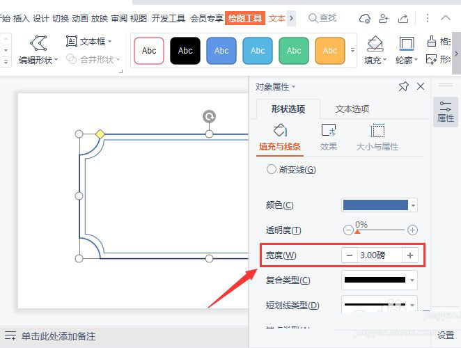 接着,我们在属性中把宽度设置为【3磅】的大小,如图所示。