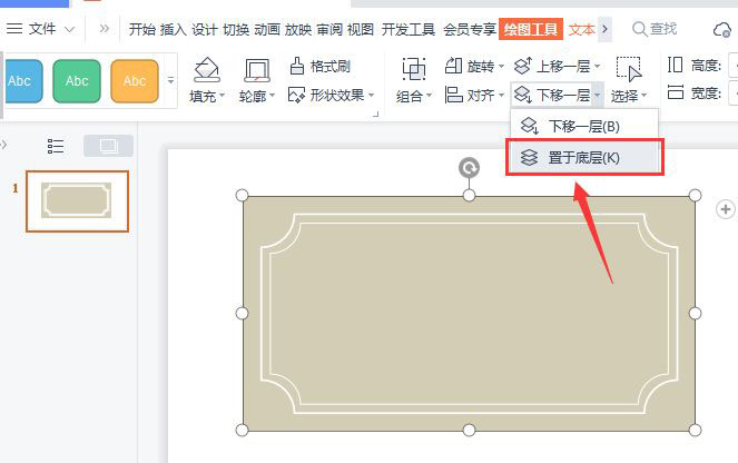 我们选中矩形【置于底层】,然后把缺角矩形的轮廓颜色设置为白色,如图所示。