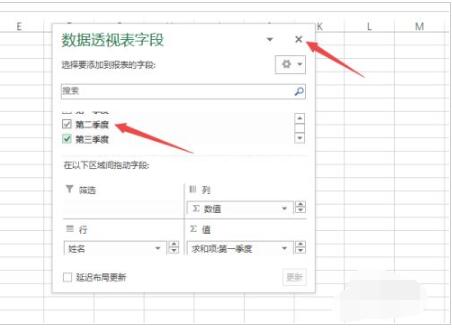 然后依次将第一季度、第二季度、第三季度都点击勾选上,点击关闭按钮;