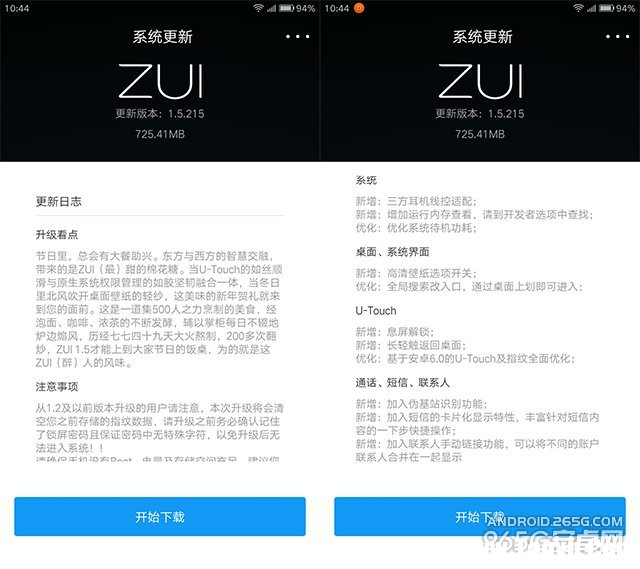 基于安卓6.0的ZUI系统1.5.215版本加入了许多新功能,比如第三方耳机适配、运行内存查看、优化系统待机功耗等等。其中体验改进最大的当属全新的U-Touch按键。