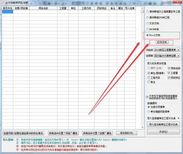 注意:在上面的操作步骤中,必须删除所有非项目/定额行(直接按键盘上的Delete键),工程量列只能保留数字内容。