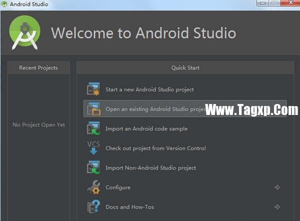 打开Android Studio,选择 Open an existing Android Studio project 。