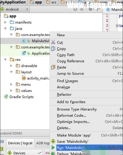 在MainActivity上点击右键-"Run 'MainActivity'"。