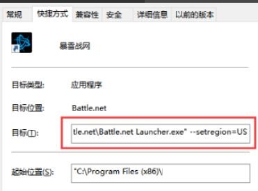 找到国服客户端桌面快捷方式,右键点击快捷方式属性,目标栏的文件名最后加上 --setregion=US。注意最前面会有一个空格。