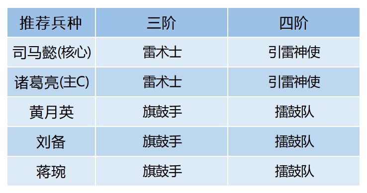 利用诸葛亮专属马特性,同阵营三鼓即可释放技能,在第一回合压低血线同时,抬起后手司马懿的士气,司马懿在诸葛亮后一位出手补伤害和控制,如果伤害不足,还可冰封等待第二回合诸葛亮继续补伤害,由于冰封减防的特性,第二回合的输出会非常爆炸,两回合结束战斗轻轻松松。