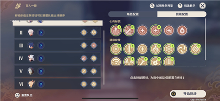 官方提供的6名试用角色,每名角色1队,队伍顺序为: