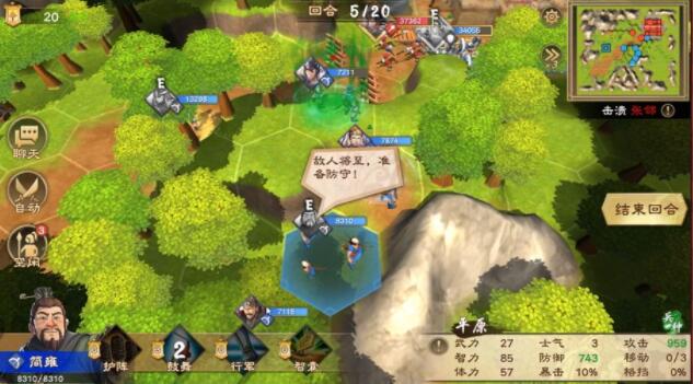 张郃自带埋伏特技,在城池处。两侧高地均有敌军,一定要小心,选择一侧高地去突进,然后引诱出张郃就可以过了。注意保持黄盖的健康血量!
