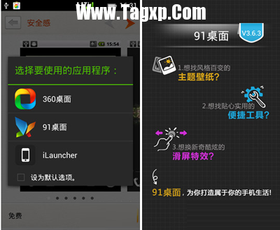 首先:下载91桌面安装包,下载完需要复制到手机,然后点击安装。也可以去91助手下或者安卓市场直接下载安装,安装完成后,按HOME键返回桌面,会让你选择默认的桌面,可以先点91桌面,若勾选设为默认选项,你的桌面就更换为新安装的91桌面了,若需要清除默认选项许到程序管理里91桌面那清除默认设置。