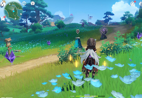 每个任务地点由一个代激发的触发器,一个可拾取雷种子的树干以及三个以触发器为圆心均匀分布的雷兆凝晶(外表为悬空的倒立紫水晶)。