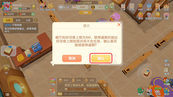 3.如果拥有餐厅好评手册,点击【确定】使用,超出好评度上限将直接浪费。