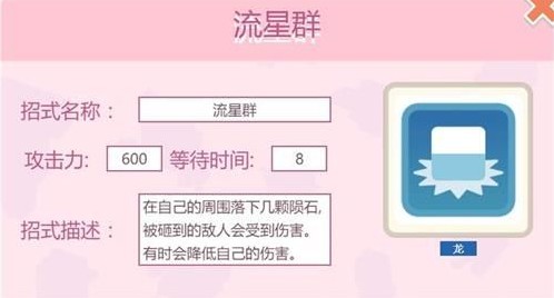 流星群的技能伤害高达600点,流星群伤害虽然高但是有几率会降低自己后续的伤害,这就是有2个技能栏的快龙要使用第二个技能龙之舞啦。