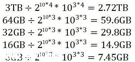 一般来说,储存器厂商都会采用十进制算法,如果按照十进制来算1GB=10^3 MB=10^3*3B=10^9B。不过微软的Windows系统和谷歌的Android系统并不是采用十进制的算法,而是采用了二进制算法。如果按照二进制来算,1GB=2^10 MB,以此类推,1GB实际上等于2的30次方个B=1,073,741,824B。两者足足相差了7.3%!这就是本文标题所提到为什么手机存储空间总是短斤少两。当大家看完下面这张图的时候,就会有所了解: