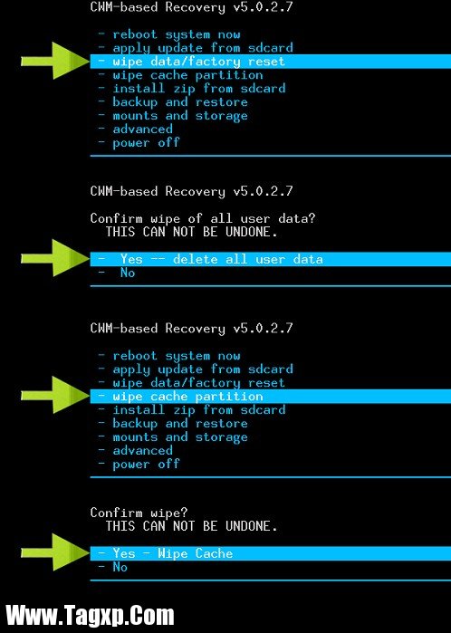 2、卡刷之前必须要进行所谓的双清(双WIPE),也就是恢复出厂设置,为保证刷机过后手机一切正常,必须在卡刷之前进行恢复出厂设置。