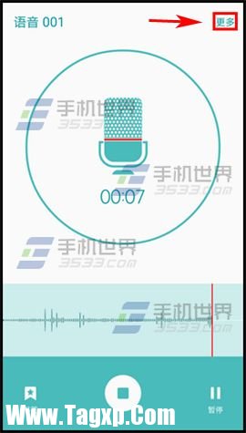 2)在录音界面点击【录音按钮】,再点击右上角【更多】。(如下图)