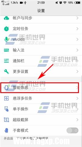 1)进入vivo X5Max手机的设置界面,点击【智能体感】。(如下图)