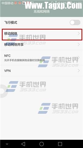 1)打开华为P8青春版的【设置】,在【全部设置】栏的【无线和网络】分类中点击【更多】,点击【移动网络】;(如下图)