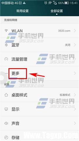 1)进入荣耀6【全部设置】界面,点击【更多】,选择【移动网络】。(如下图)