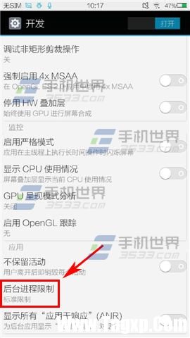 2)点击【后台进程限制】,这里小编建议选择4进程。(如下图)