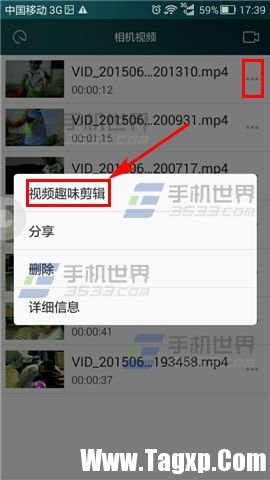 2)点击【三点】,在提示框中点击【视频趣味剪辑】,自行选择剪辑区域及特效即可,而且还能加特效呢!duang!(如下图)