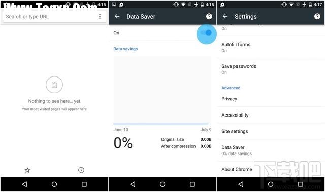 Chrome浏览器的设置菜单中有一个非常实用的;流量节省程序(Data Saver)”功能,它可以让浏览器对接收的所有数据进行压缩,从而起到节省流量的目的。该功能对浏览体验几乎没有任何影响,但节约流量的效果却非常显著。