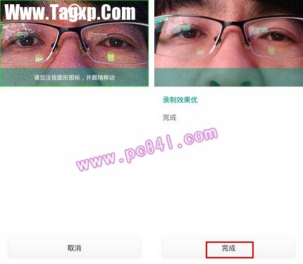 3,么么哒3S的眼纹识别设置十分简单,用户只需按照界面提示跟随界面上的圆形图标移动即可完成眼纹录入的过程,并且系统会根据用户的眼纹录入质量评估眼纹是否可以用户解锁即可使用,如下图所示:
