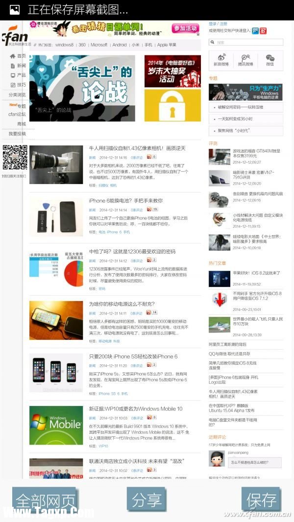 随着智能手机屏幕越来越大,很多人都喜欢直接浏览PC风格的网页,但想抓取长长的整个网页内容时,我们往往需要分别截屏再拼图,好不麻烦。实际上,Android手机完全可以利用第三方浏览器实现对整个网页内容的截屏。