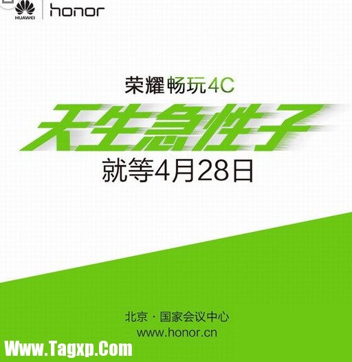 华为荣耀官方微博宣布,将于4月28日在北京国家会议中心召开发布会,正式发布荣耀4C。