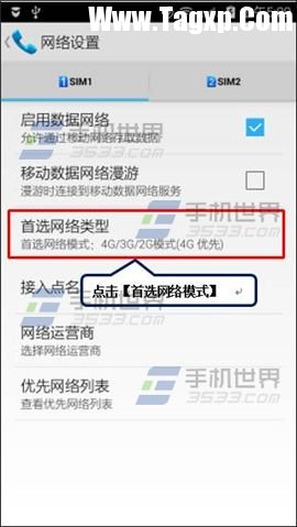 2)点击【首选网络类型】,根据需求设置首选网络类型。(如下图)