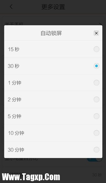 选择锁屏的时间。(个人推荐30秒或者1分钟)